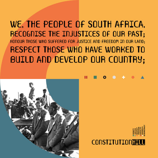 The Preamble to the South African Constitution is a pact made in the name of the people of South Africa. It announces that this document both reflects on the injustices of the past and sets the norms and values for the future. It identifies human rights, equality and freedom as founding democratic values of South African society.
