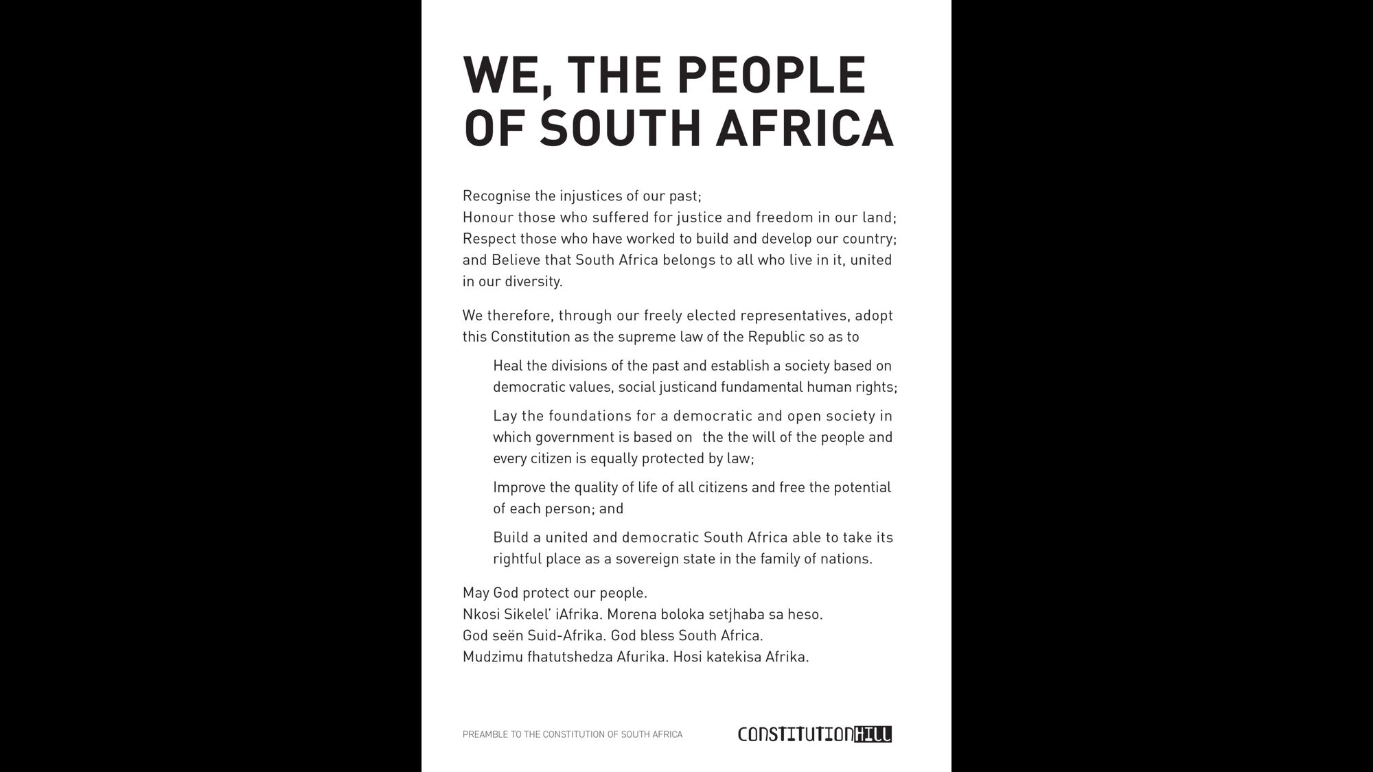 The Preamble to the South African Constitution is a pact made in the name of the people of South Africa.